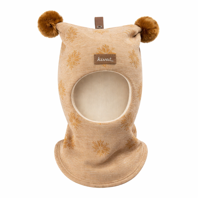 Myssyssä on Kivat-merkki ja myssyn päällä on näkyvyyttä lisäävä heijastinnauhalenkki.