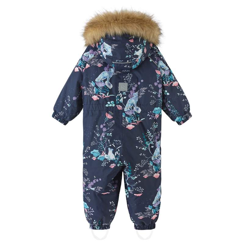 Irrotettava huppu, tekoturkissomiste, sisäpuolelta säädettävä vyötärö ja kestävät silikoniset jalkalenkit tekevät käytöstä turvallista ja mukavaa. Haalari on yhteensopiva Reima Play Layers -välikerrosten kanssa.